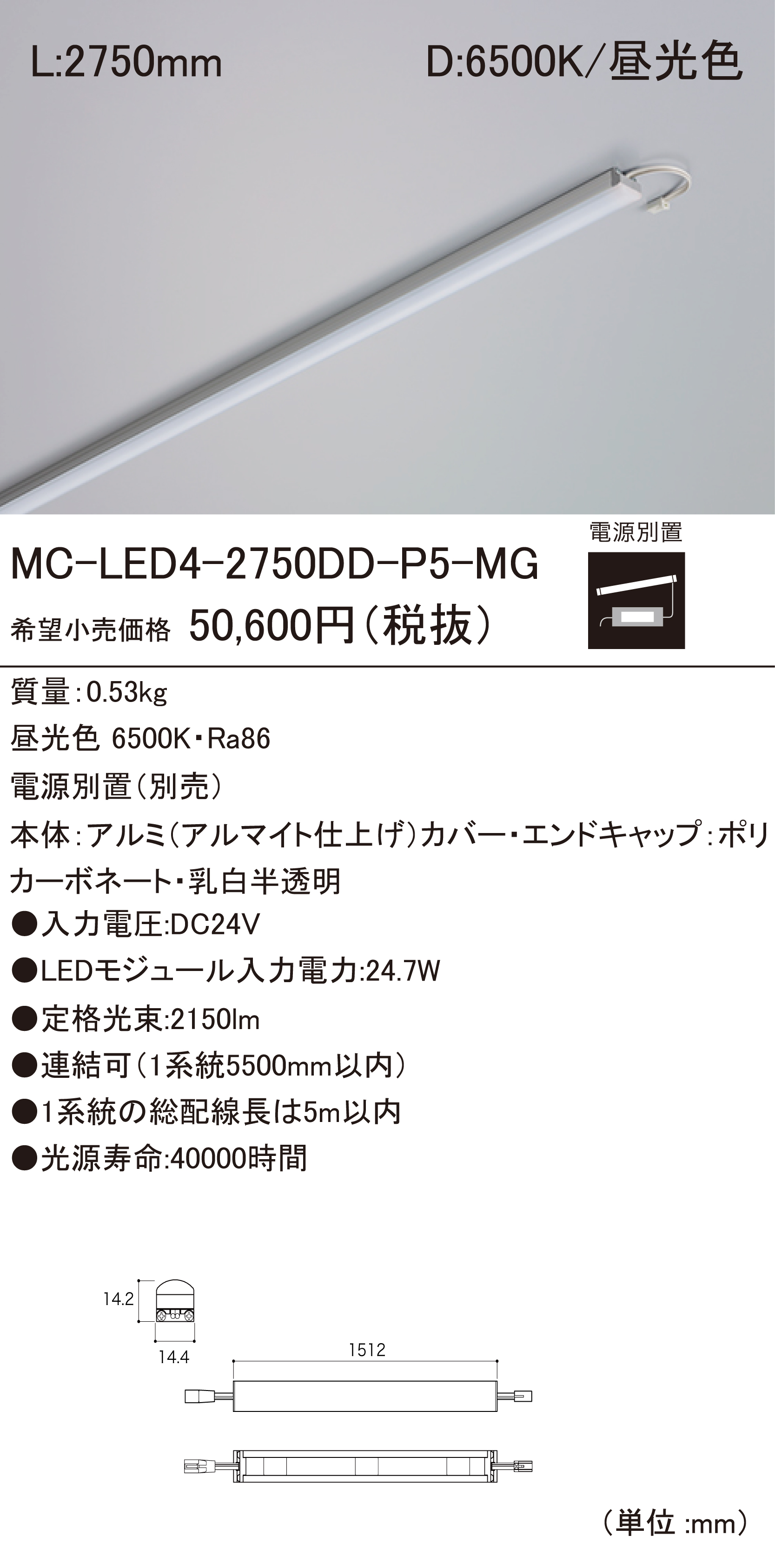 • 連結可(1系統5500mm以内)