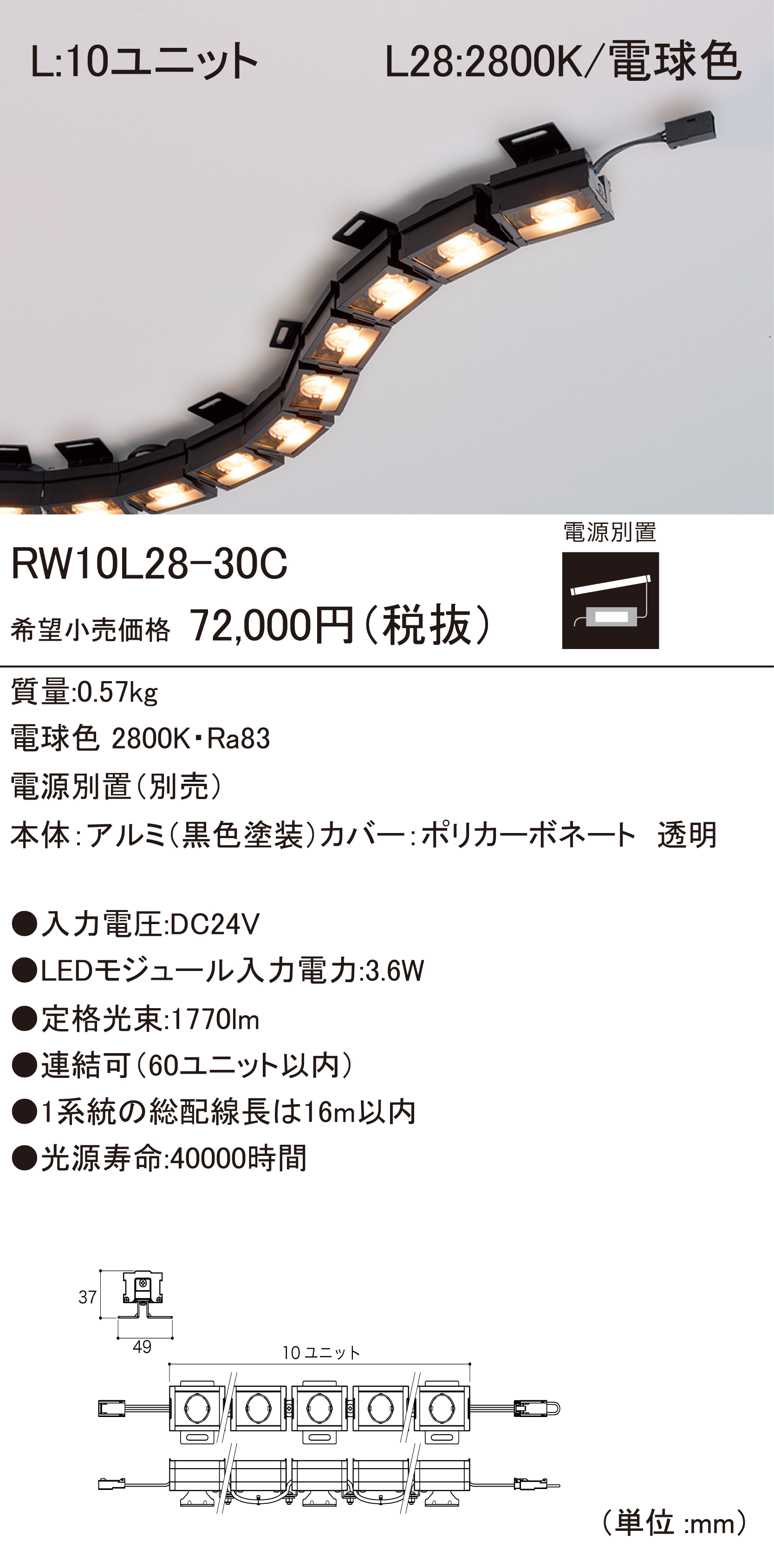 • 60ユニット(3m)まで連結可能
